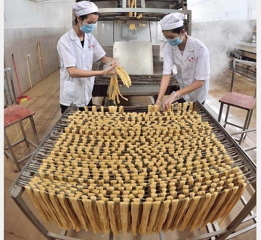 廣西玉林市素金食品有限責任公司品牌始創于2010年,品牌主導產品為“素金牌”黃豆腐竹、黑豆腐竹、花生腐竹等多種類腐竹。公司座落在20多畝果園式廠區的優美環境之中,擁有自主研發知識產權及5項發明專利先進的腐竹專業生產線,是一家機械化加工、無廢氣排放、水資源良性循環利用,具備研發、制造、生產豆類食品的專業加工企業。